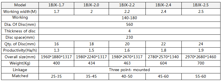 Disc Harrow are suitable for pulverized and loosening clods on sticky heavy clay soil after ploughing and for planning the land before sowing. On cultivated land, the machines can make soil and fertilizer mix up, and clear away the stump of plants and be used instead of plough on light or medium soil and preparing seed bed for planting.
